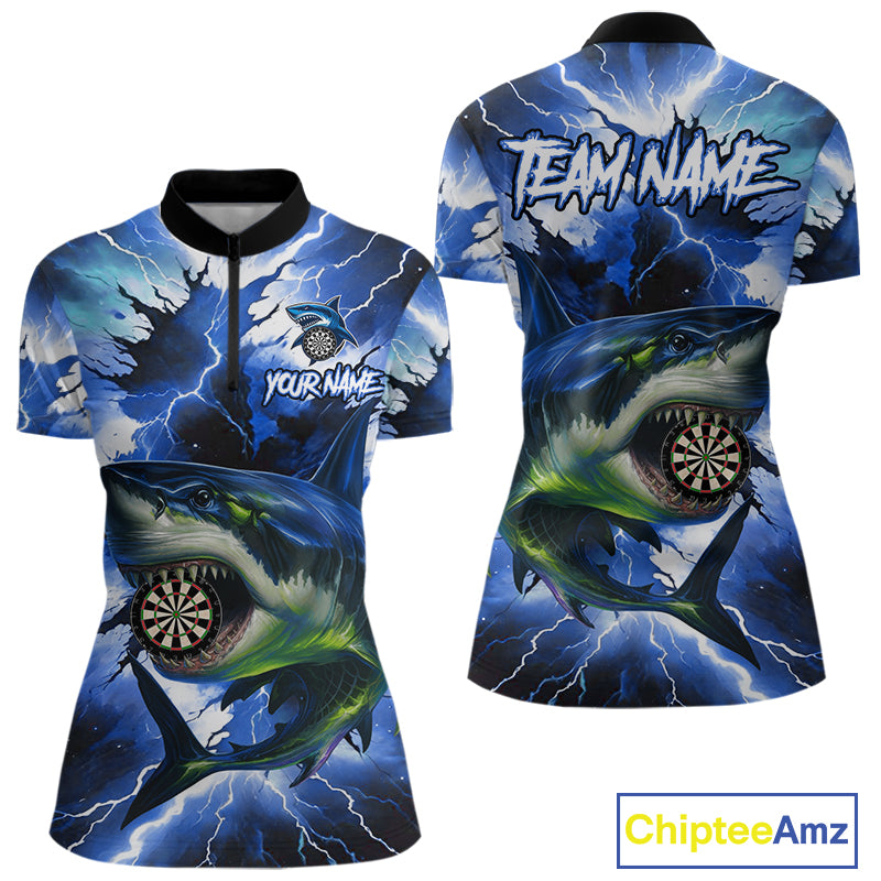 Thunder Lightning Storm Shark Darts Shirt For Women Custom Blue Darts Team Jersey Polo & Quarter Zip TDM4569
