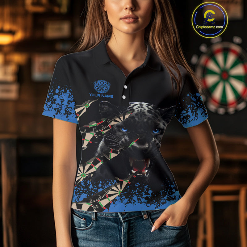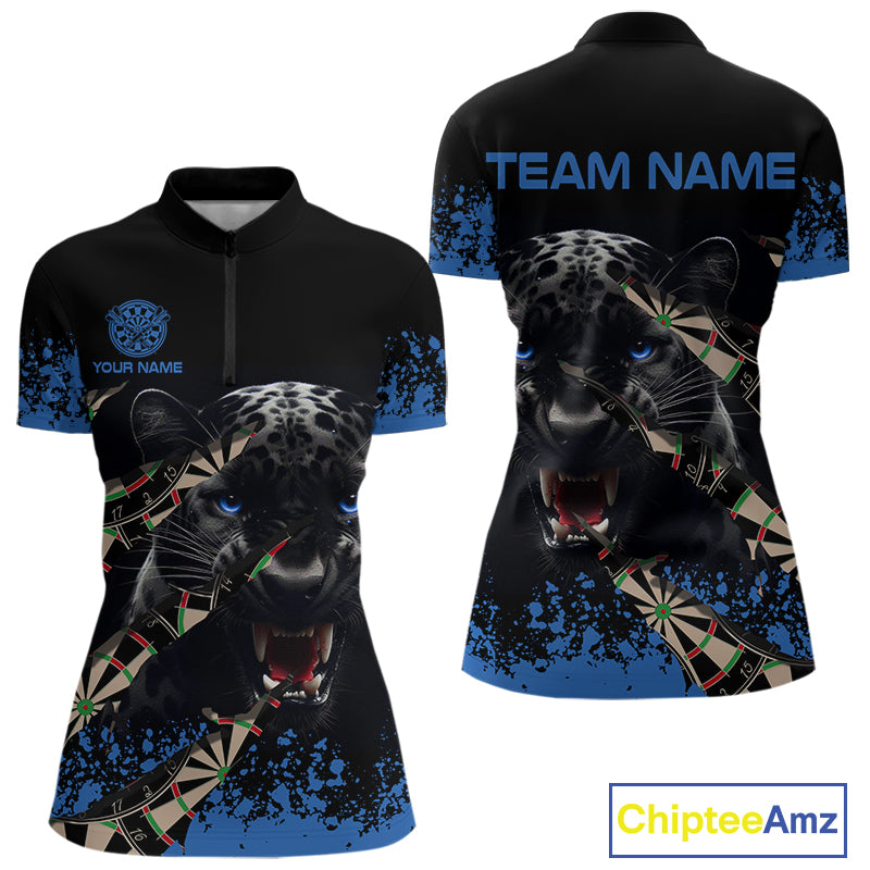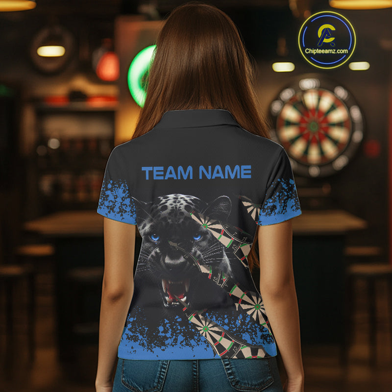 Black And Blue Grunge Panther Darts Shirt Polo & Quarter Zip For Women Custom Darts Team Jersey TDM4582