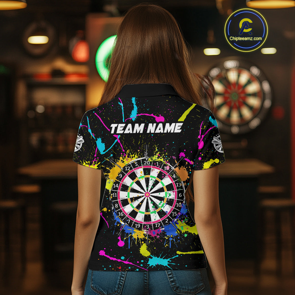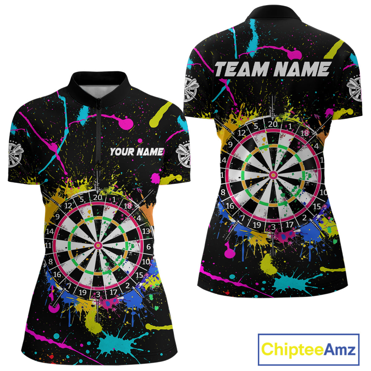 Funny Colorful Paint Darts Jersey For Women Custom Polo & Quarter Zip Darts Team Shirts Outfit TDM4602