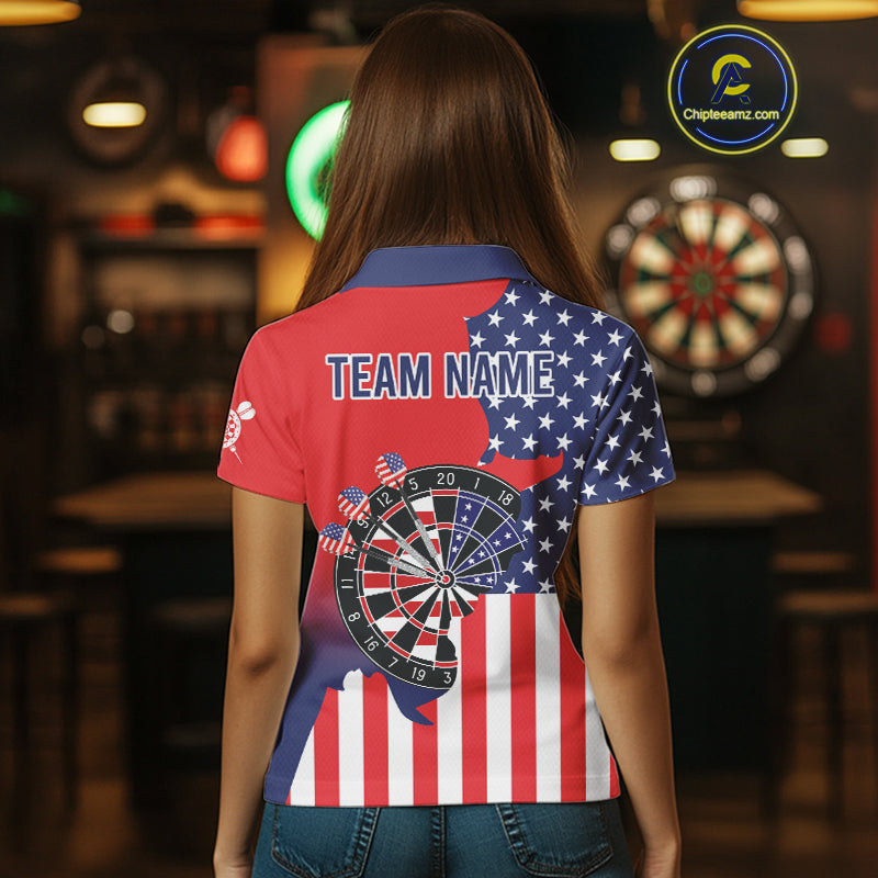 American Flag Dartboard Patriotic Darts Shirt For Women Custom Darts Team Jersey Polo & 1/4 Zip TDM4608