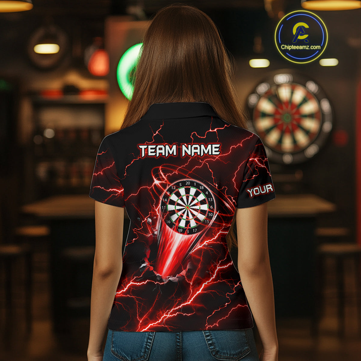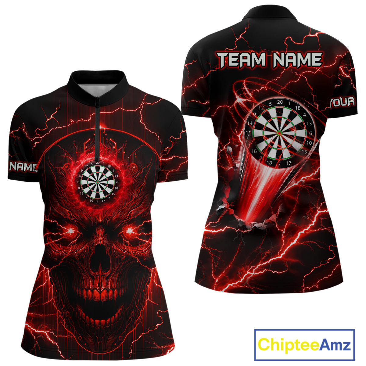 Personalized Red Darts Skull Shirt For Women Custom Polo & 1/4 Zip Lightning Thunder Darts Jersey TDM4621
