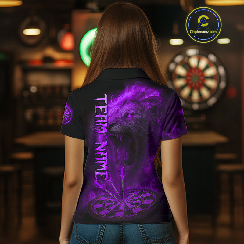 Personalized Fire Flame Lion Darts Shirt For Women Custom Purple Darts League Jersey Polo & 1/4 Zip TDM4679