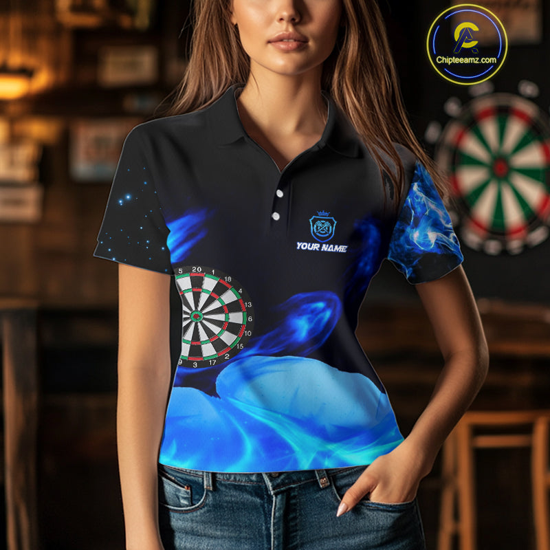 Custom Black And Blue Darts Shirt With Pocket Option For Women, Darts Jersey TDM4722
