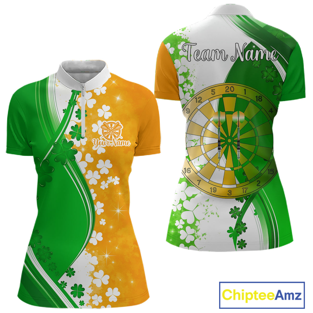 Green And Orange Glowing Shamrock Luckiest Dart Shirts For Women Custom St Patrick Day Darts Jersey TDM4750