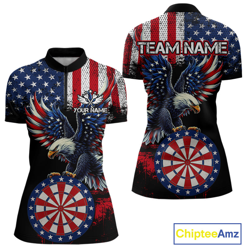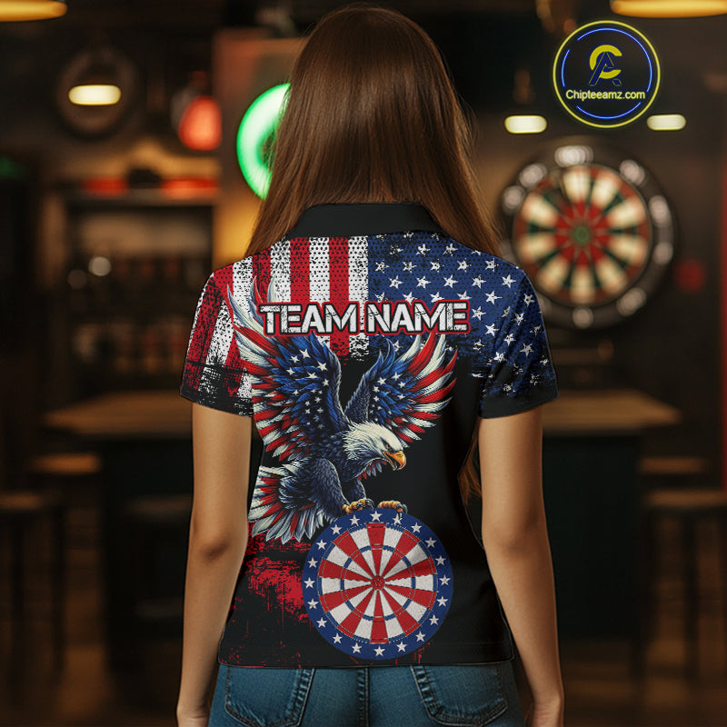 Personalized Patriotic Eagle Dartboard Jersey For Women Custom American Flag Darts Team Shirt TDM4755
