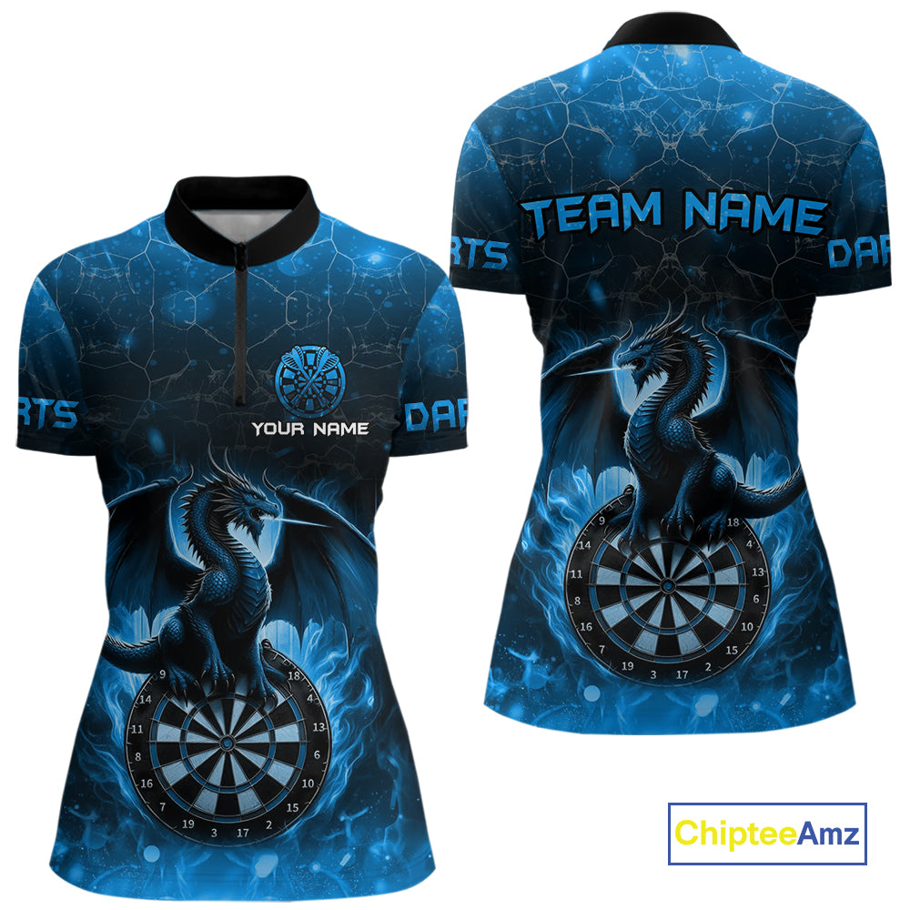 Darts Dragon Fire Flame 3D Printed Darts Shirts For Women Custom Team League Darts Jerseys |Blue TDM4760