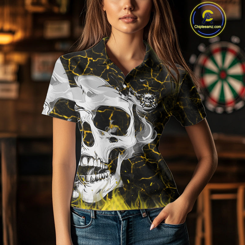 Personalized Yellow 3D Fire Crack Skull Dart Shirts Custom Scary Dart Shirts For Women Dart Jersey TDM4761