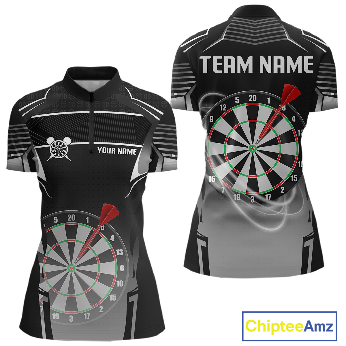 Black And White Dartboard Lights Custom Darts Polo & Quarter Zip For Women, 3D Darts Team Jersey TDM4802