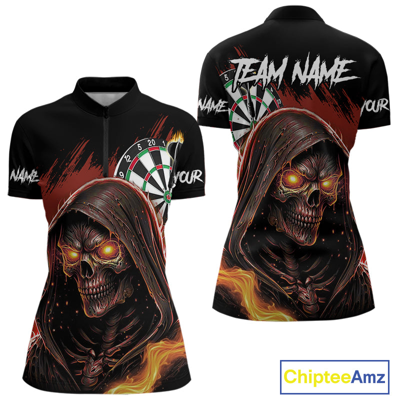 Personalized Red Death Skeleton Fire Dart Shirts For Women Custom Skull Dart Jersey Polo & 1/4 Zip TDM4891