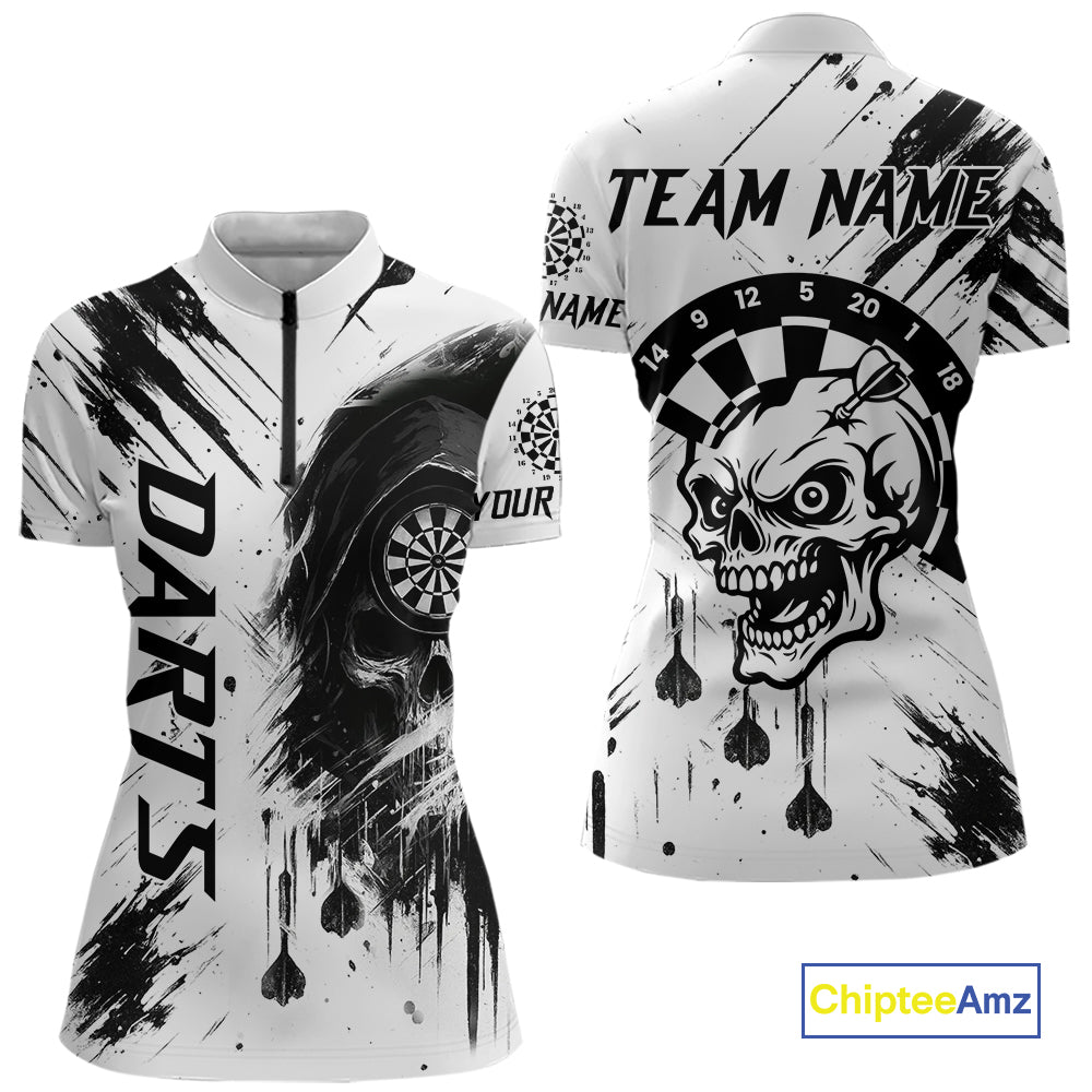 Personalized White Black Grunge Skull Darts Shirt For Women Custom Funny Darts Team Jersey Outfit TDM4908