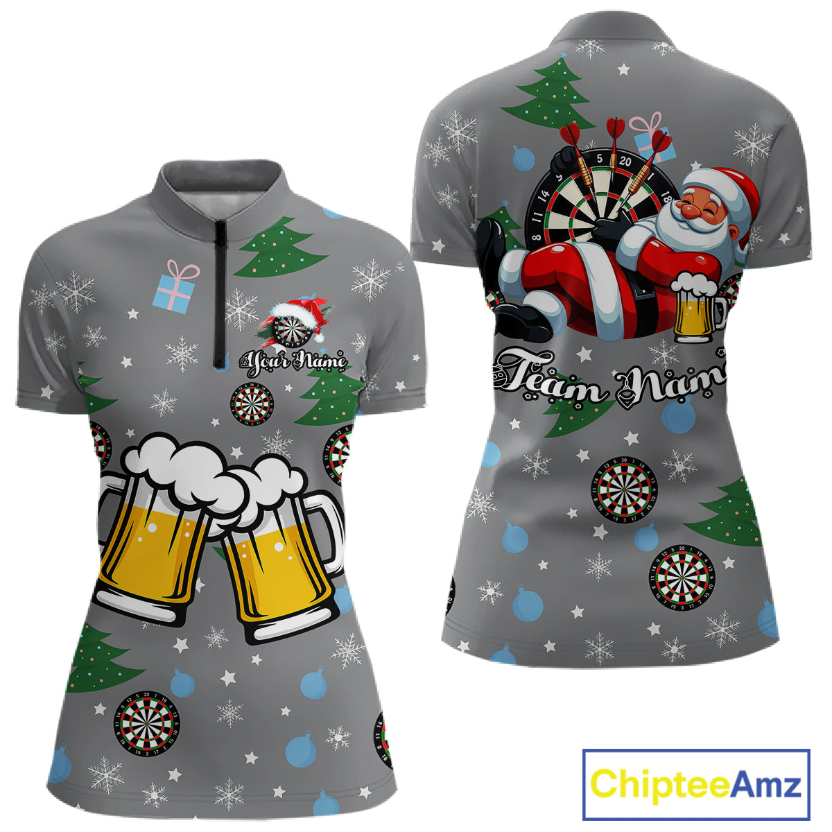 Funny Santa And Beer Christmas Darts Polo & 1/4 Zip For Women Custom Xmas Darts Shirt, Darts Gift TDM4911