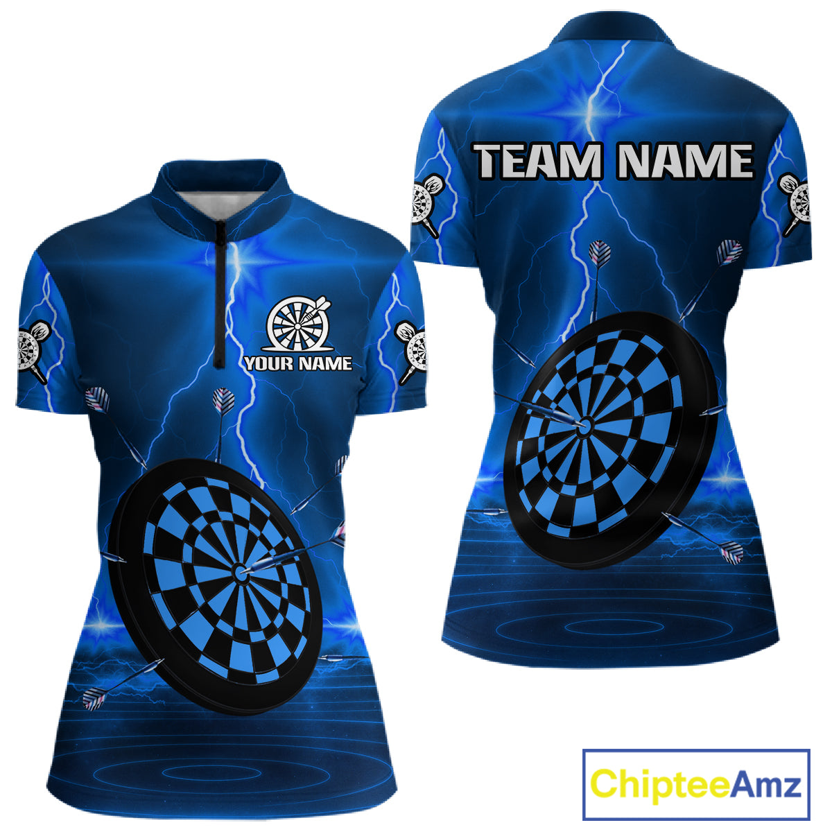 Personalized Dartboard Thunder Lightning Blue Darts Shirt For Women Custom Glowing Darts Team Jersey TDM4920