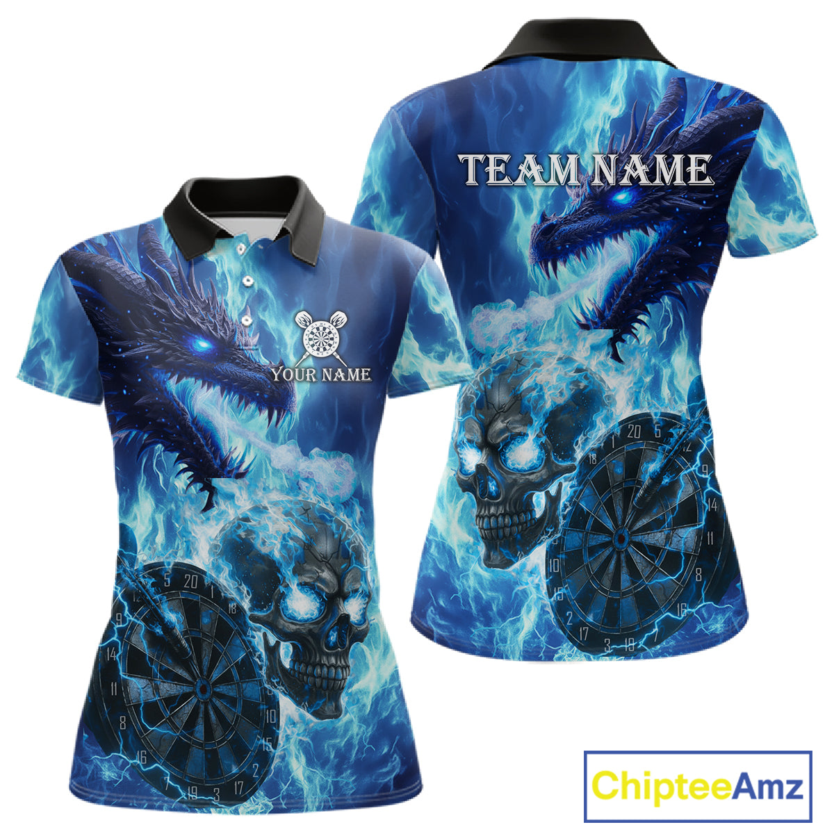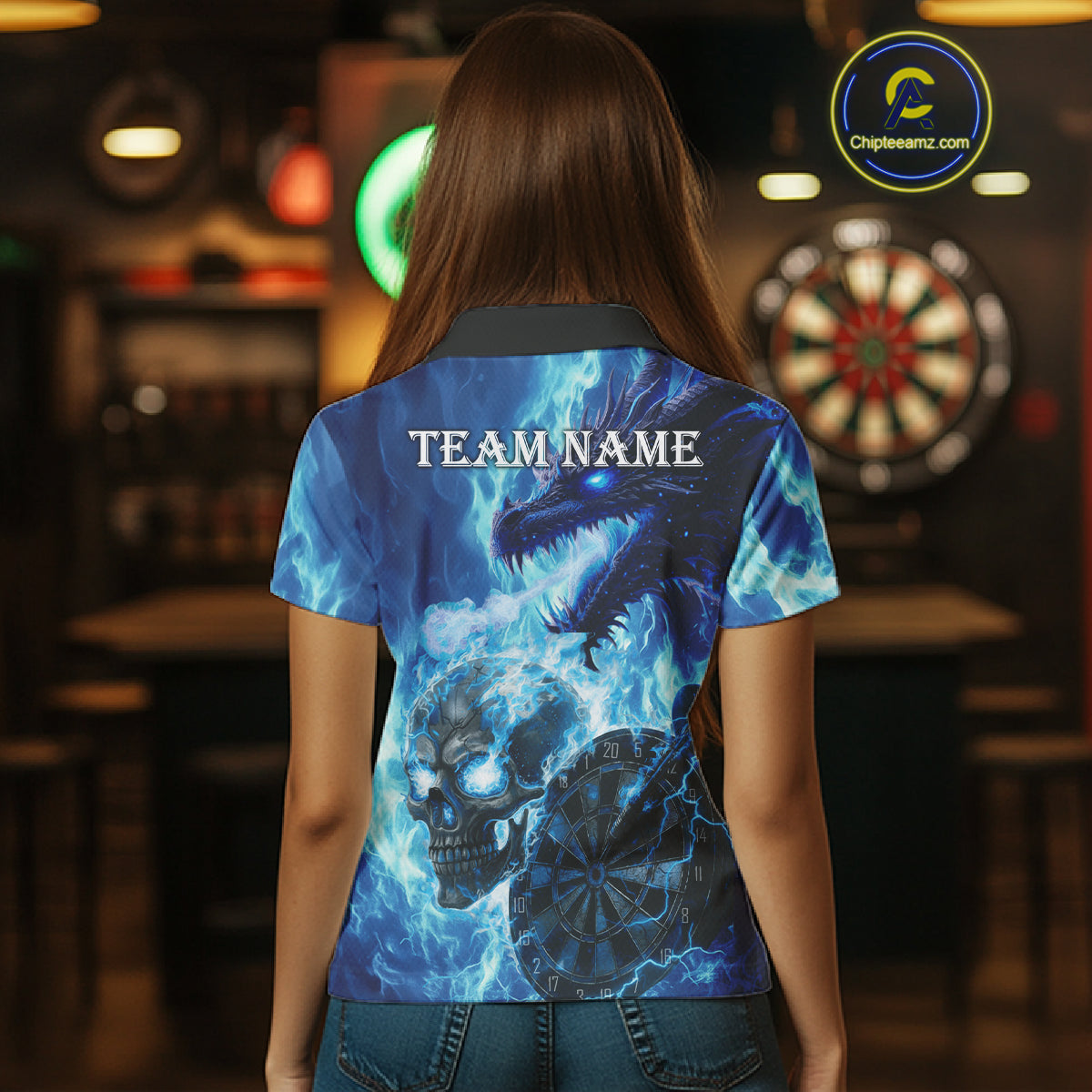 Personalized Blue Flaming Dragon And Skull Darts Shirt For Women Custom 3D Fire Darts Team Jersey TDM4960