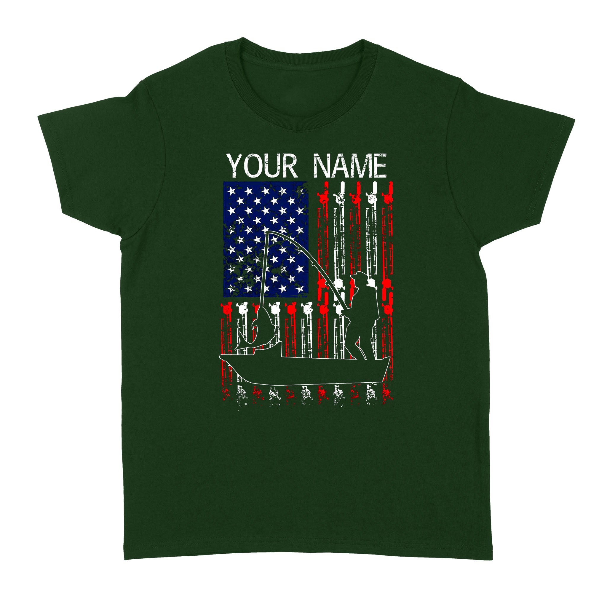 American flag fisherman kayak fishing custom name US fishing rod D05 NQS1244 - Standard Women's T-shirt