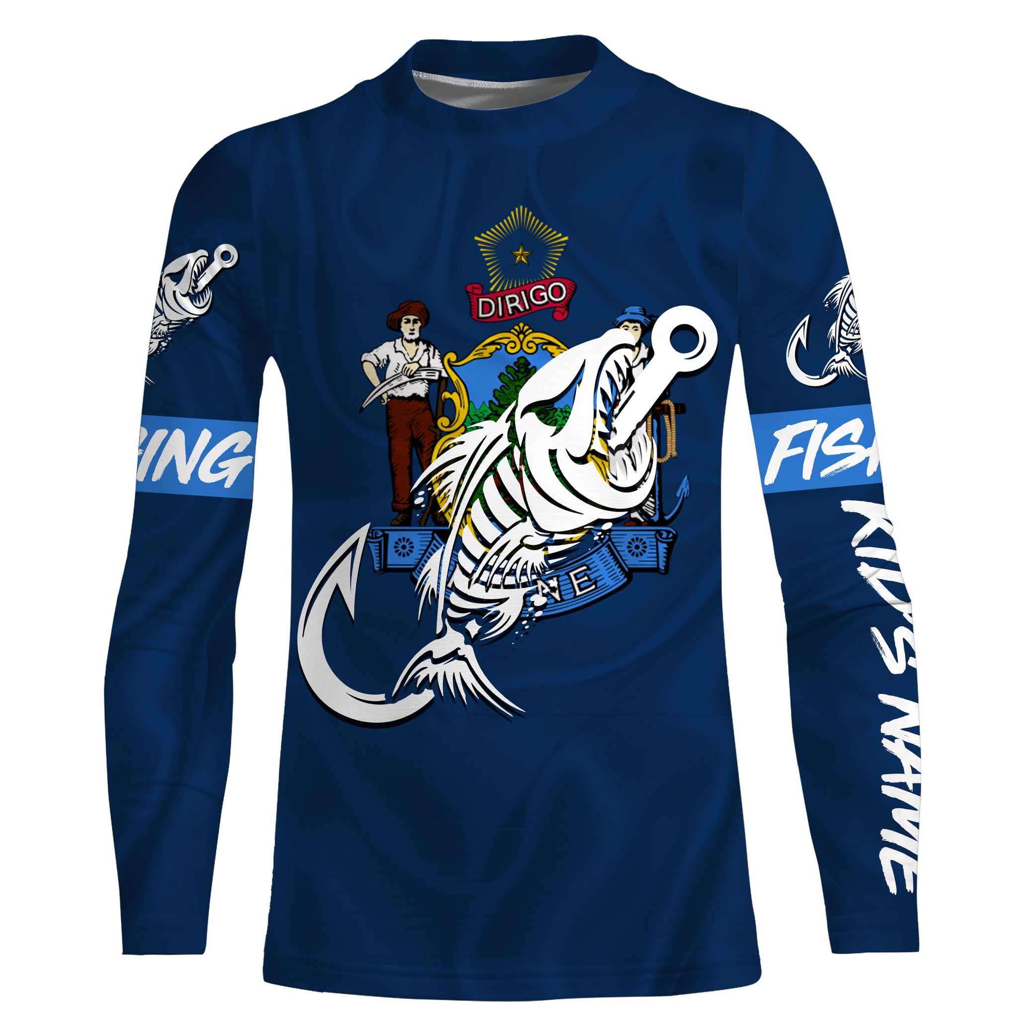 ME Maine Fishing Flag Fish hook skull Custom sun protection fishing shirts for men, women, kid NQS3395