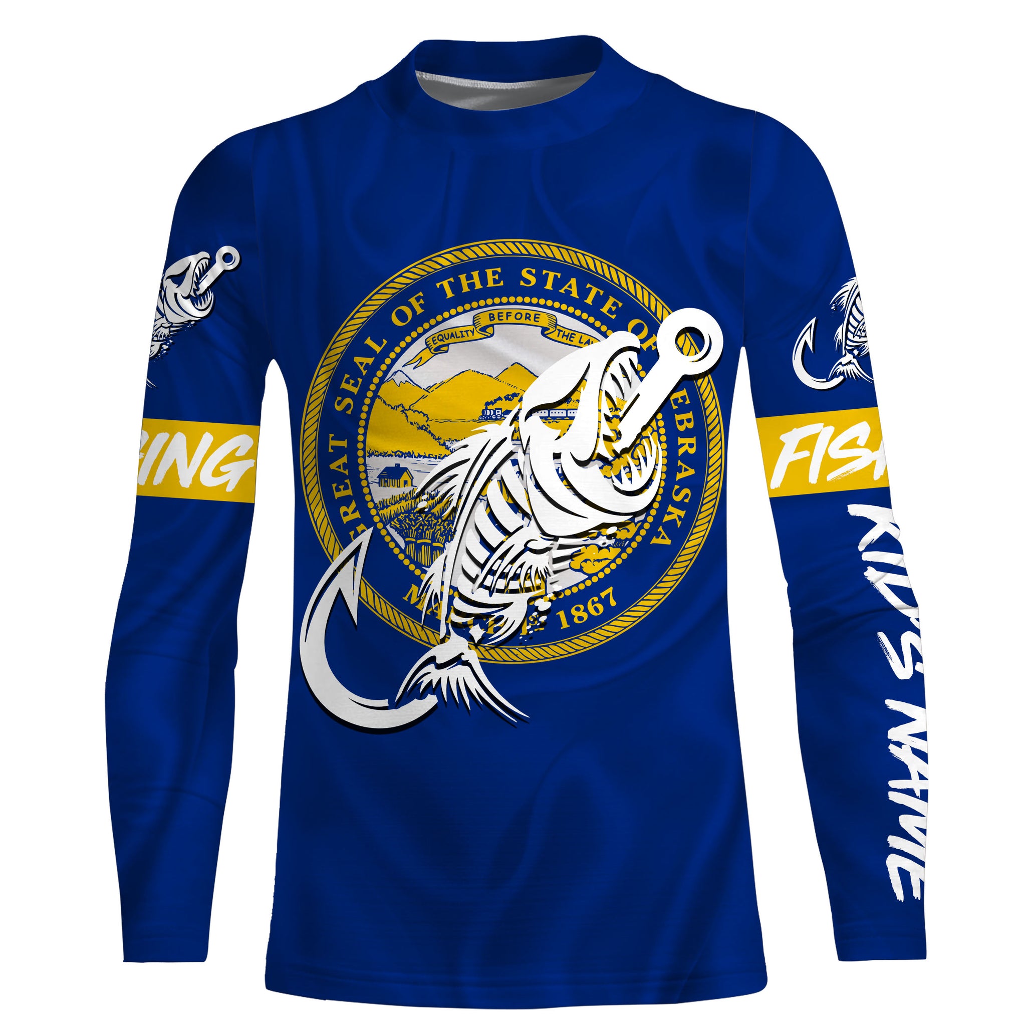 NE Nebraska Fishing Flag Fish hook skull Custom sun protection fishing shirts for men, women, kid NQS3398