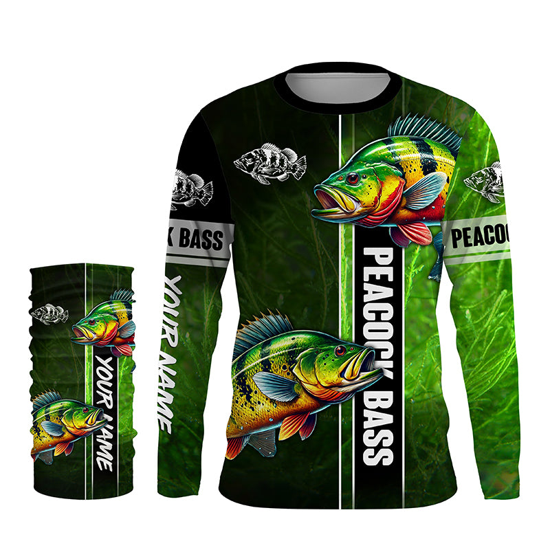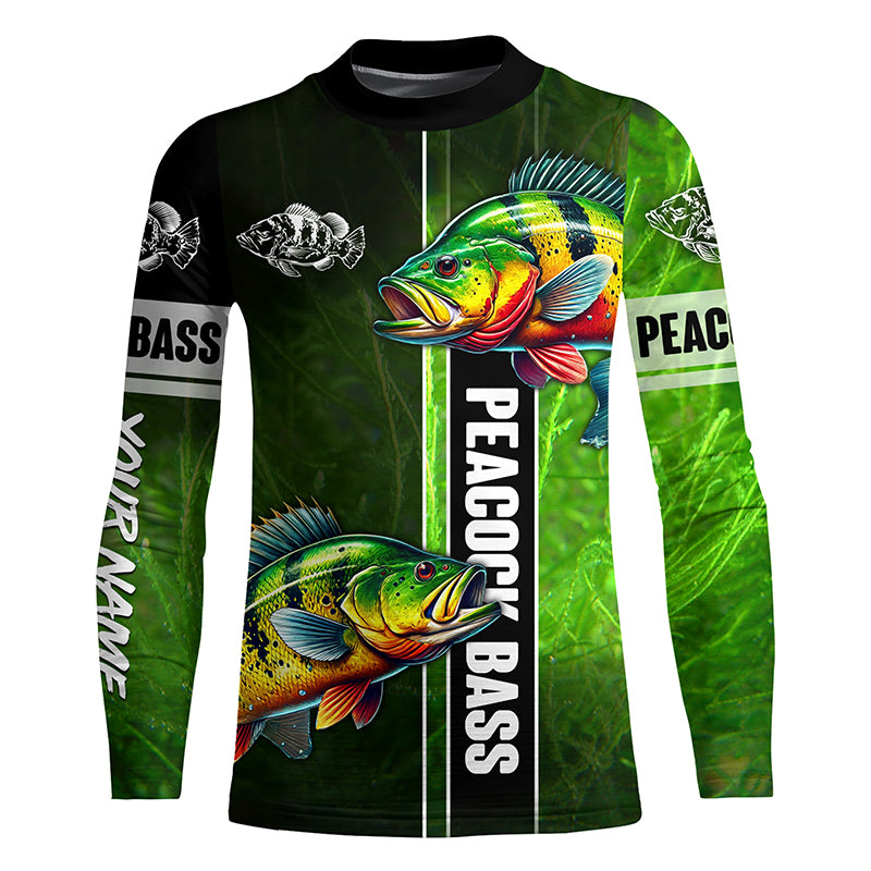 Peacock bass fishing green shirt Custom Long Sleeve Fishing Shirts, fishing gifts for men, women, kid NQS4804