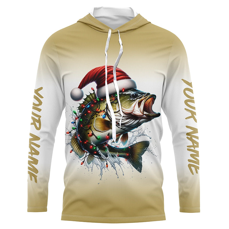 Christmas Lights String Bass Christmas Fishing Shirts With Customized Name, Xmas Fishing Gifts IPHW5584