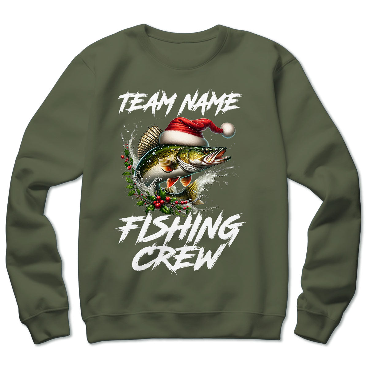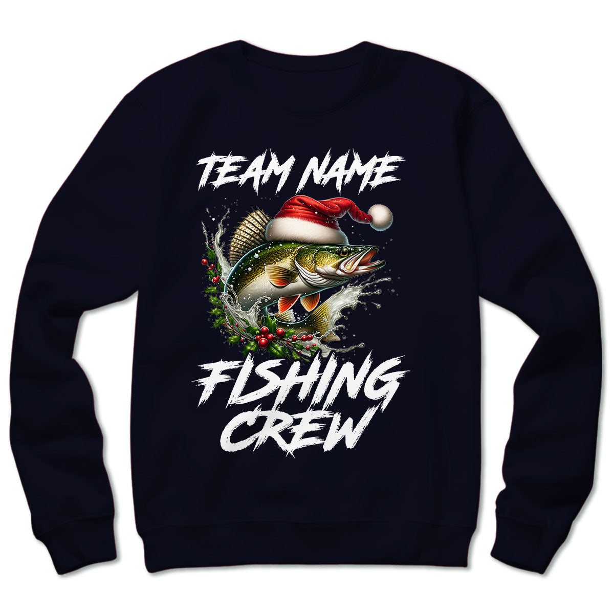 Custom Christmas Walleye Fishing Team Shirts, Walleye Fishing Crew Sweatshirt, Christmas Fishing Gifts IPHW5668