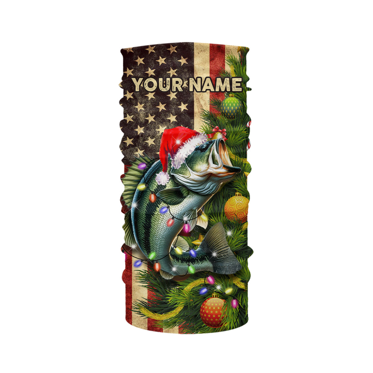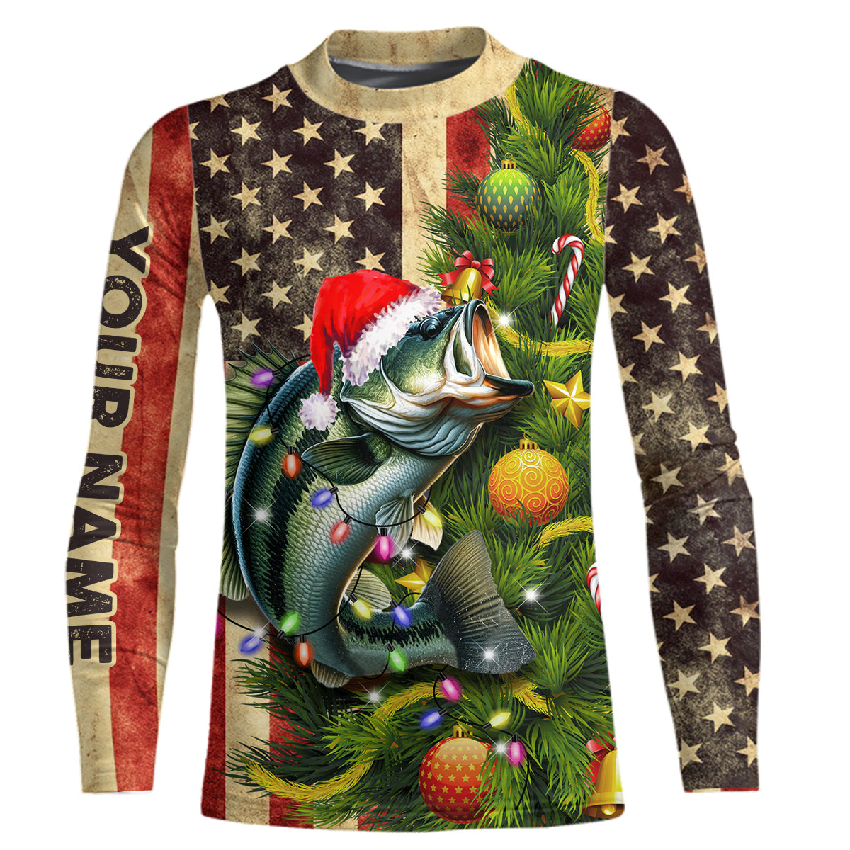Personalized Christmas Bass fishing American flag patriotic Performance long sleeve Fishing Shirts NQS6944