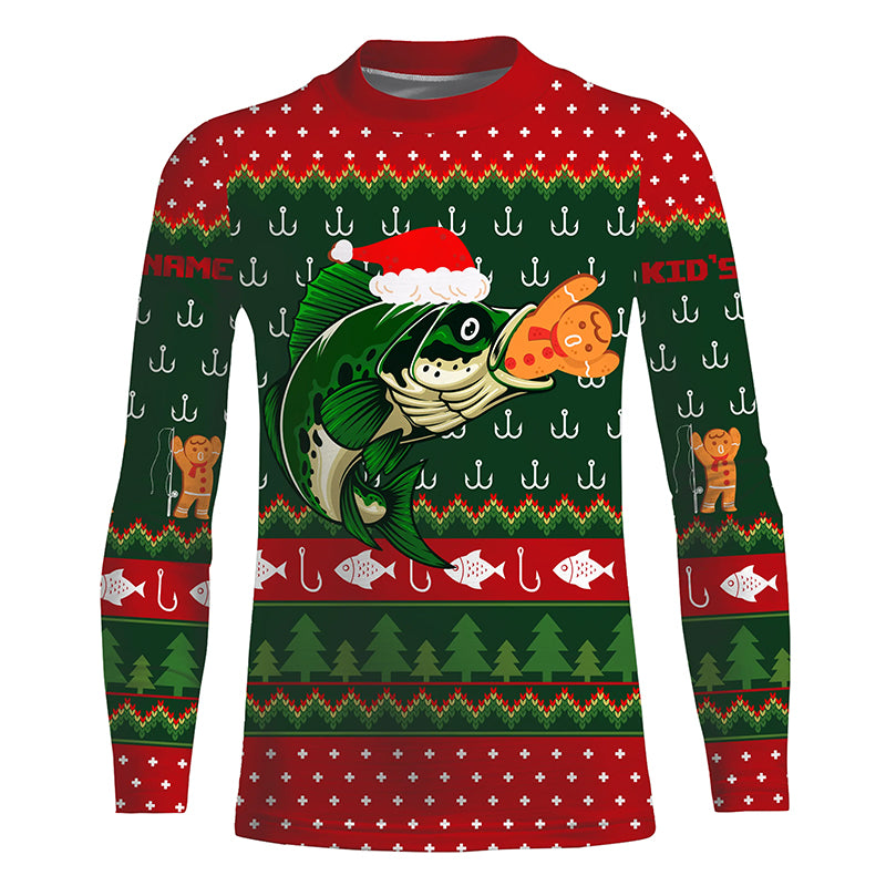 Ugly Christmas Sweater Gingerbread Bass Fishing Shirt, Christmas Fishing Gift for men, women, kid TTN104