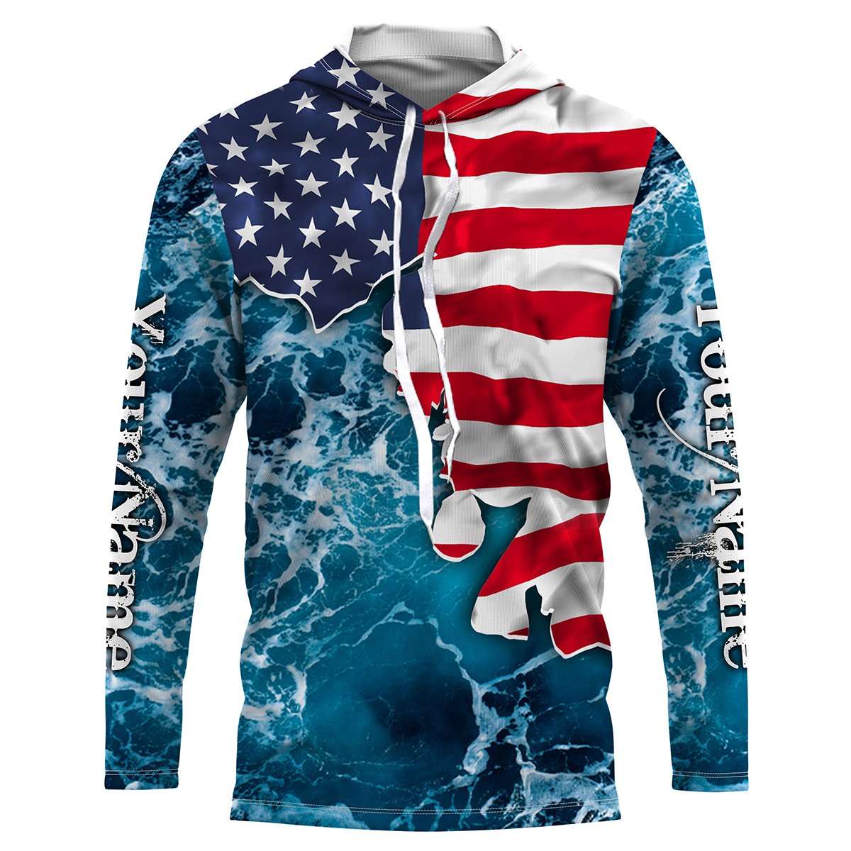 American Flag Sea Waves Fishing Custom Name Performance Shirts UV Protection Quick Dry UPF 30+ FSD2618