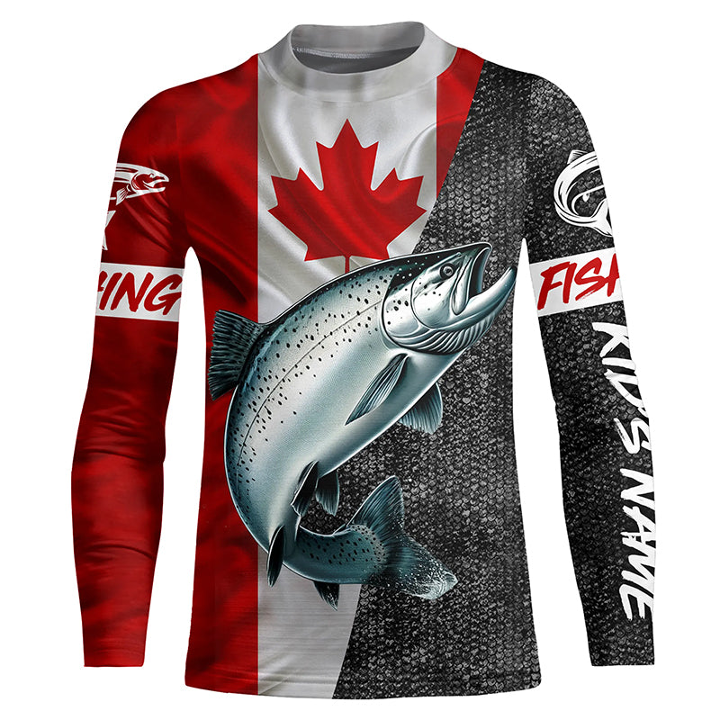 Canadian Flag salmon Fishing Custom long sleeve performance Fishing Shirts, salmon Fishing jerseys NQS5037
