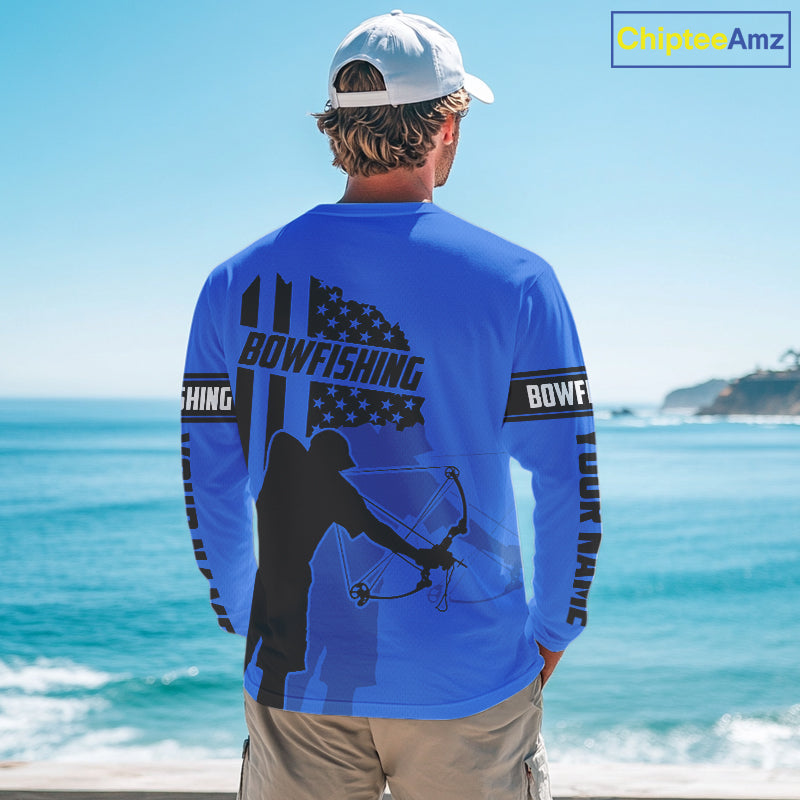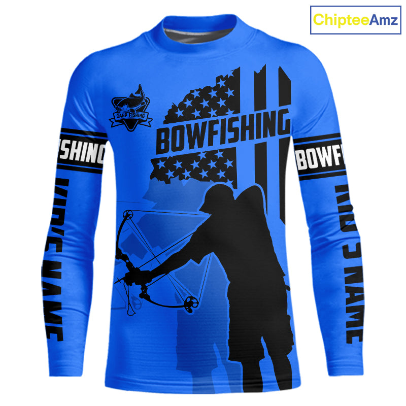 Carp hunter bowfishing black and blue American flag Custom UV sun protection Long sleeve Fishing Shirt NQS9818