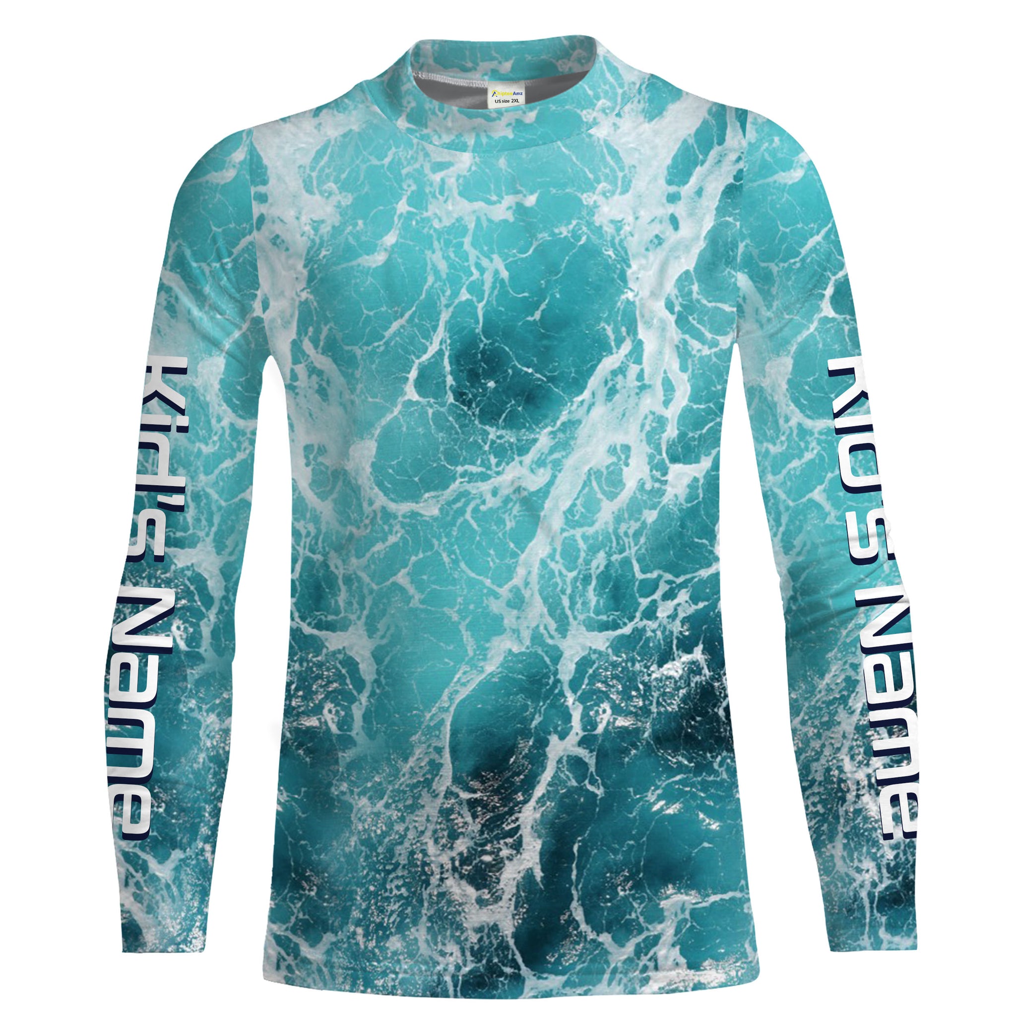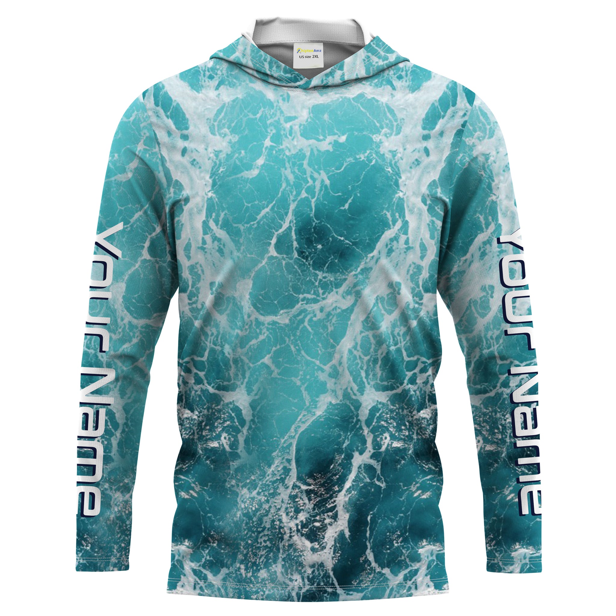 Custom Saltwater Long Sleeve performance Fishing Shirts, blue Sea wave camo Fishing jerseys IPHW1327