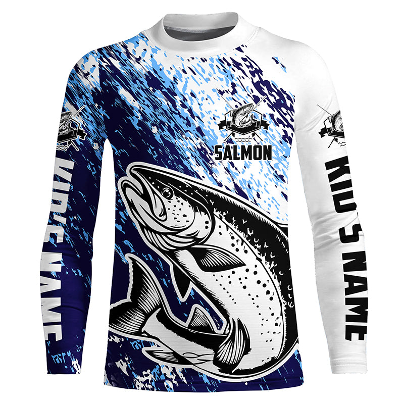 Custom Salmon Fishing Jerseys, Salmon Fishing Long Sleeve Performance Shirts | Blue IPHW6299