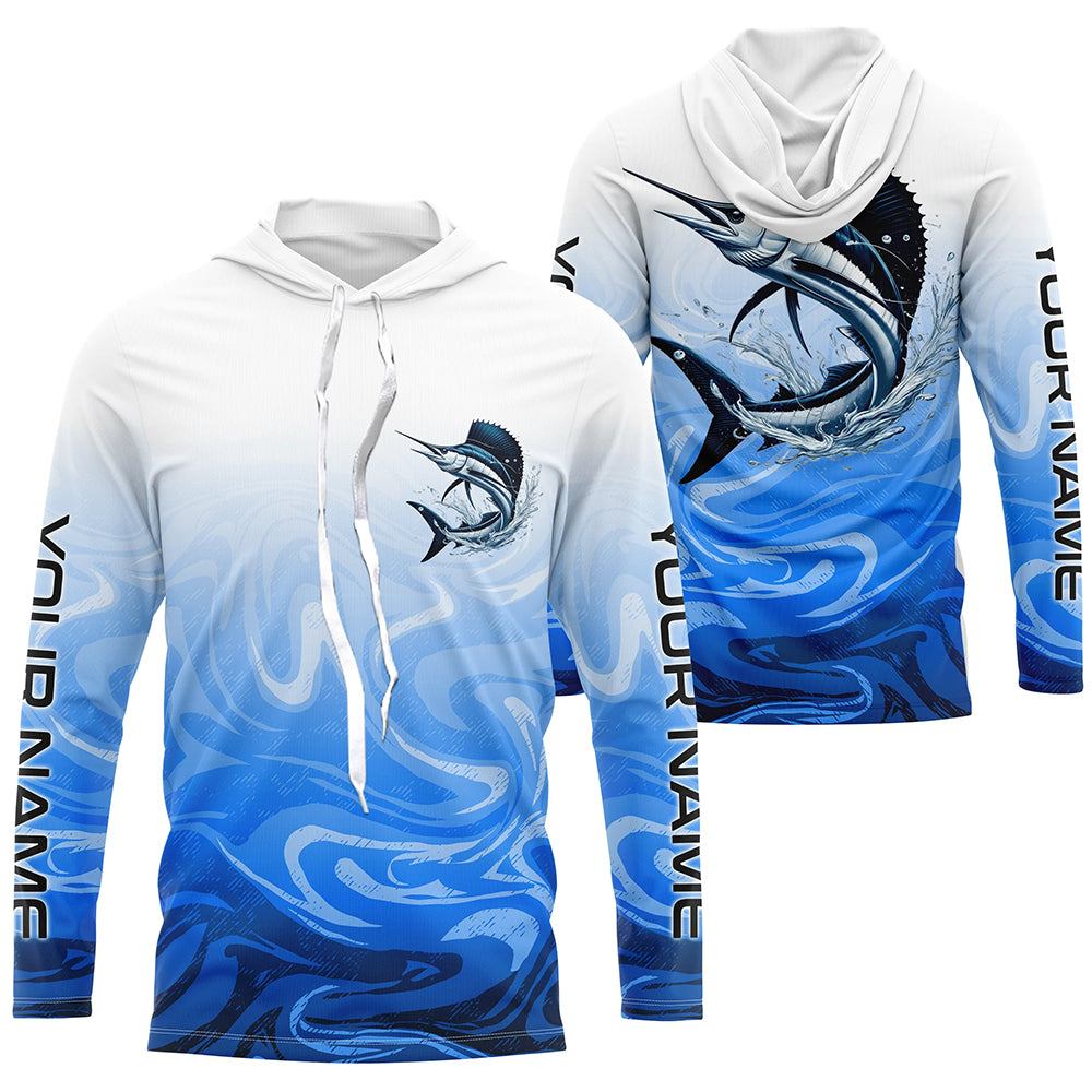 Sailfish Fishing Custom Long Sleeve Shirts, Sailfish Saltwater Fishing Apparel | Blue Camo IPHW6368