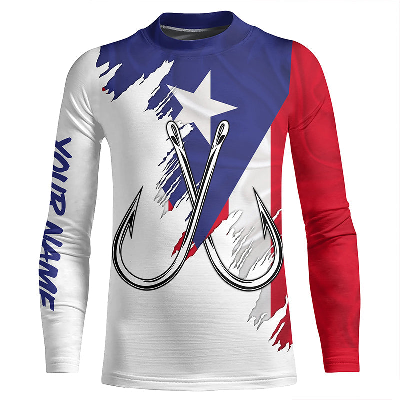 Puerto Rico flag Fishing Fish Hook UV protection custom long sleeve Patriotic fishing apparel NQS8357