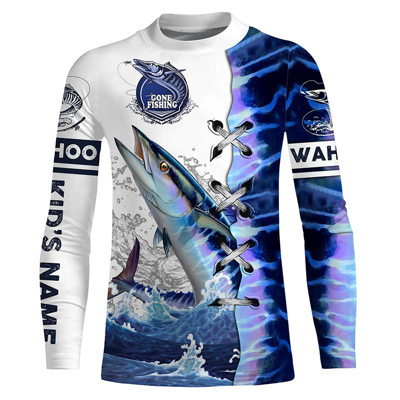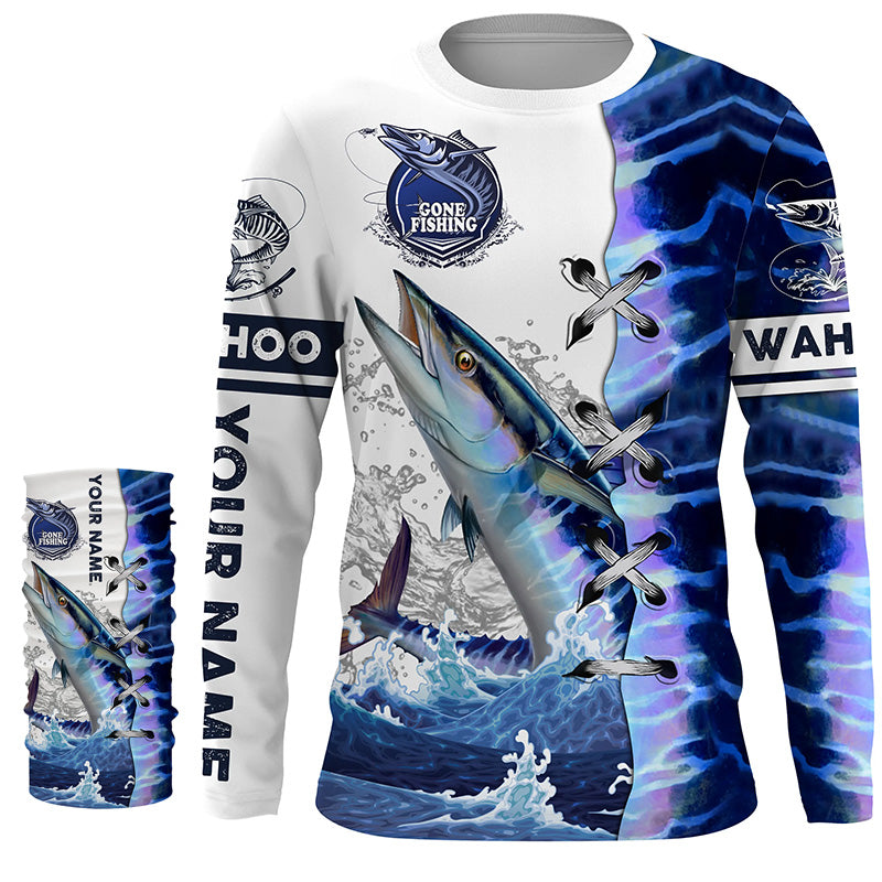 Wahoo fishing scales custom sun protection long sleeve fishing shirts, Wahoo saltwater fishing jerseys NQS4100