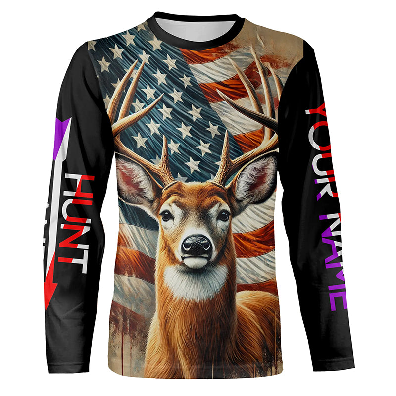 Deer Hunting American flag Custom name Shirts for Hunter, Best Deer Hunting Gifts FSD426