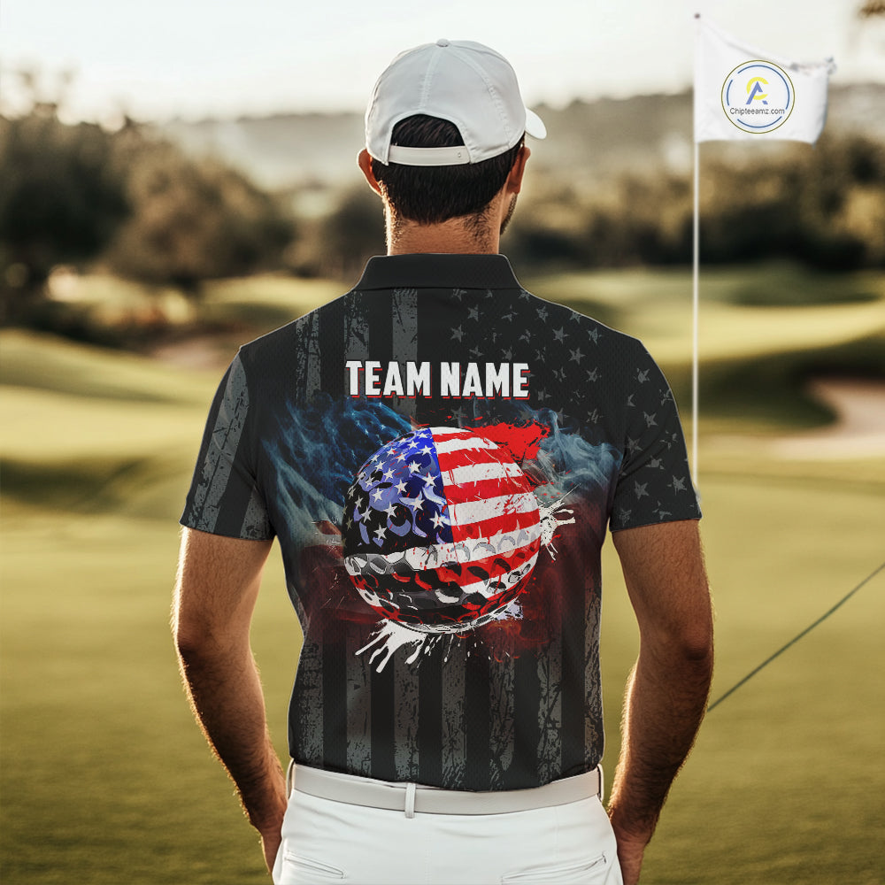 Black American flag smoke Mens golf polo shirts Custom Patriotic Team Golf attire NQS10615