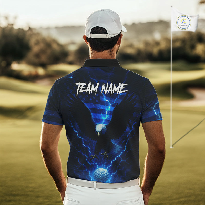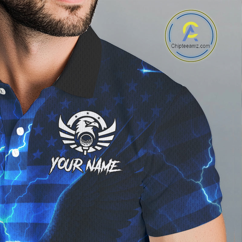Blue lightning Thunder American Flag Eagle Golf Polo Shirt For Men Custom mens golf outfit NQS10737