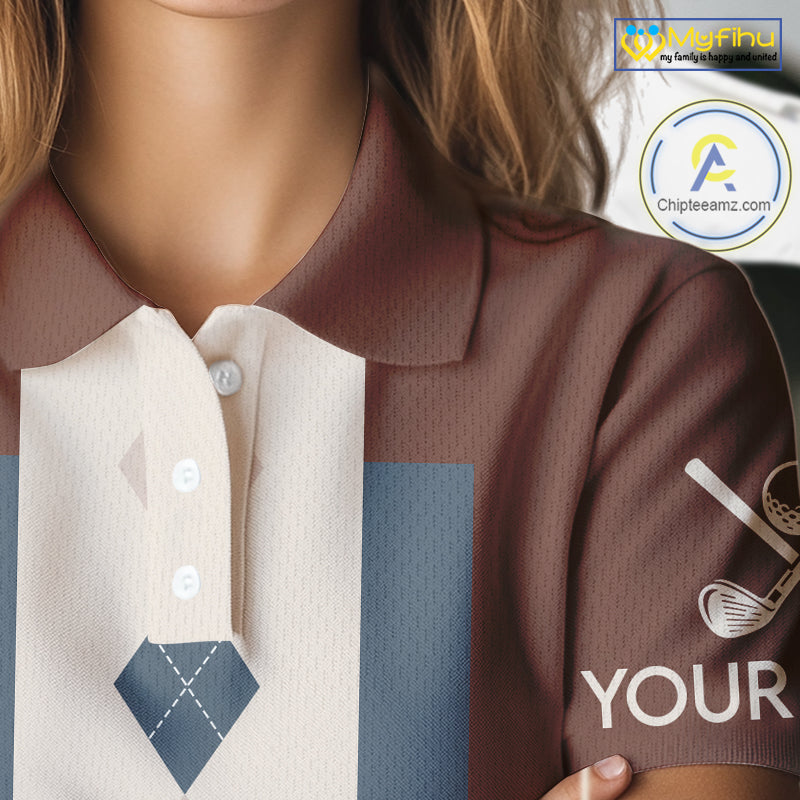 Brown Argyle Pattern Women Golf Polo Shirts Custom Vintage Style For Golf Lovers Gift For Ladies NQS10233