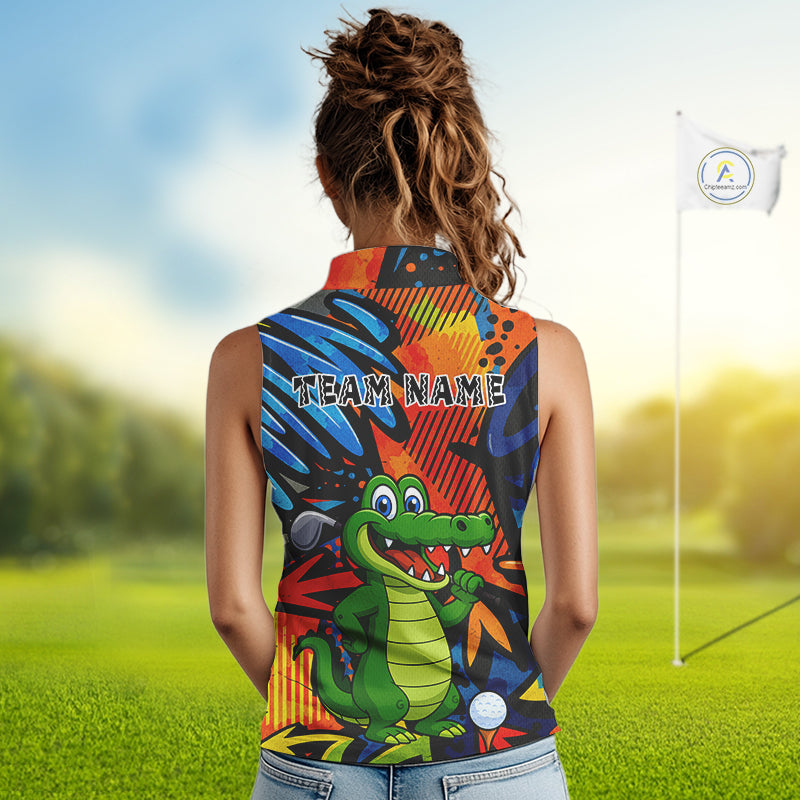 Custom Funny Colorful Graffiti Alligator Women Sleeveless Polo Shirt, Personalized ladies golf wear NQS10736