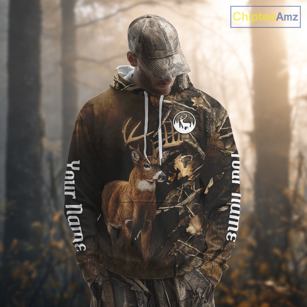 Deer Hunting Brown Camouflage Custom Name 3D Printing Shirt for Men, Deer Hunting Gifts NBT160