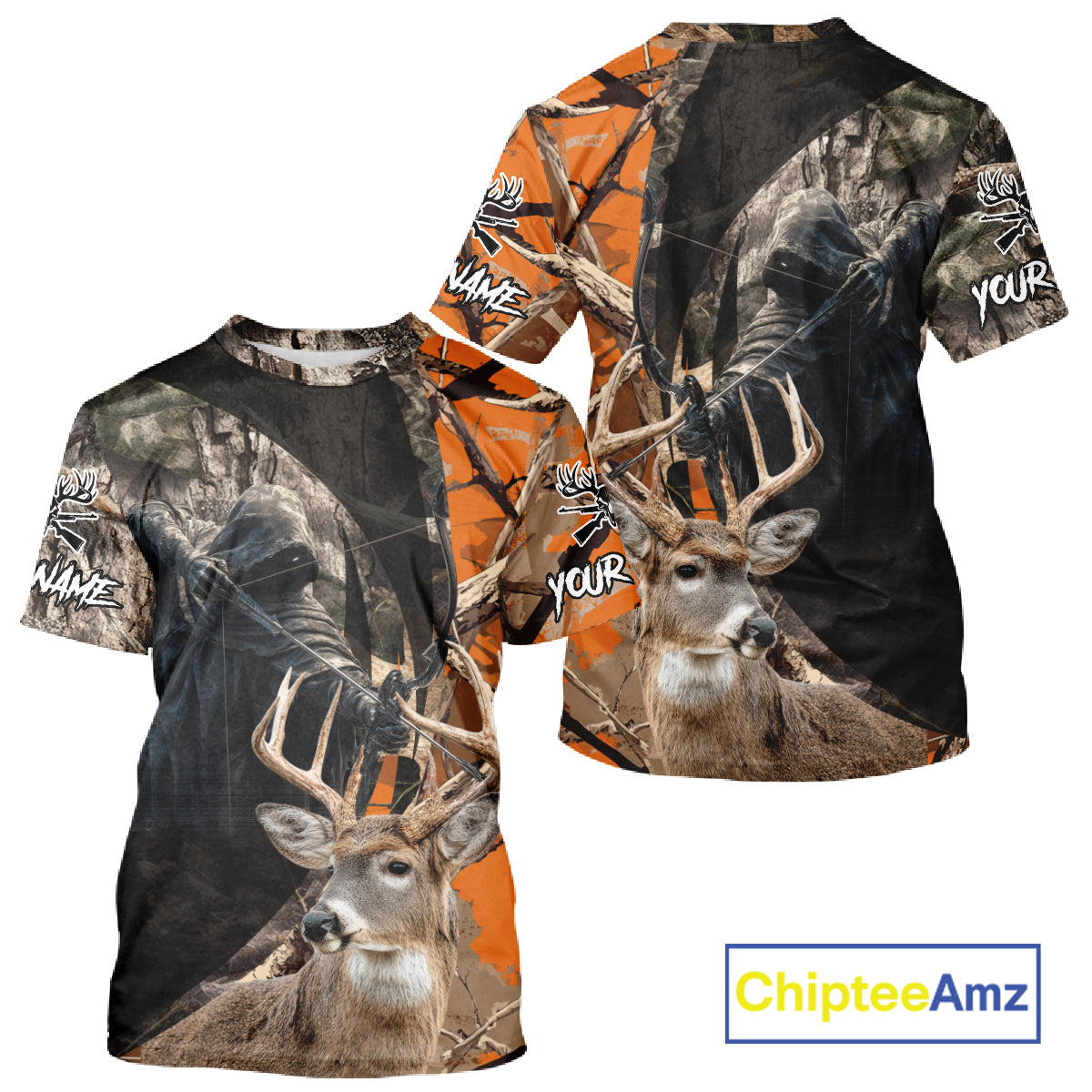 Deer Hunting Grim Reaper Camo Orange 3D All Over Printed Shirt, Personalized Hunting Shirt NHT269