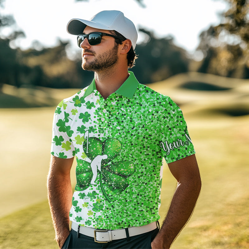 Green glitter shamrock clover Mens Golf Polo Shirts custom St Patrick day golf shirt for mens NQS9462