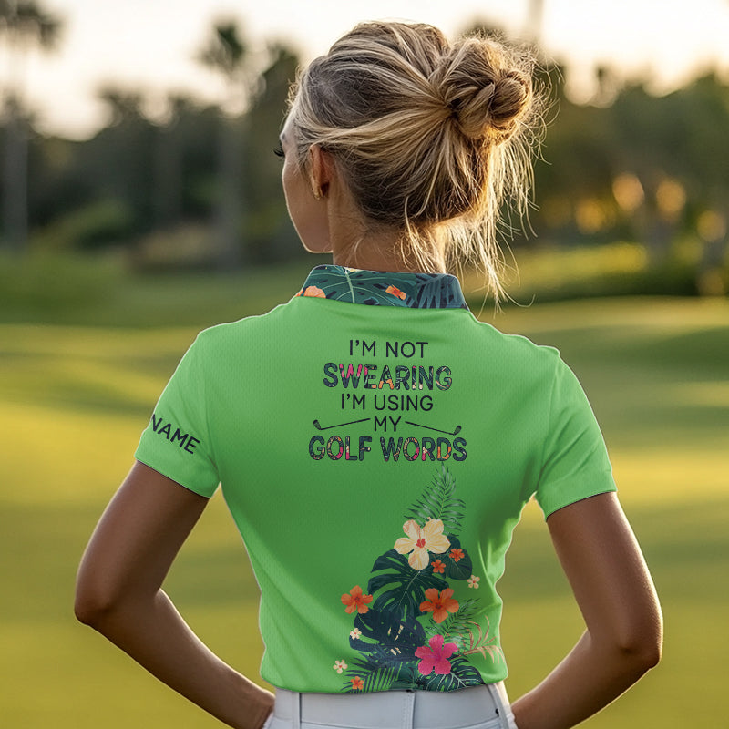 Green tropical leaf Funny Women golf polo shirts custom name I am not swearing I'm using my golf words NQS9754