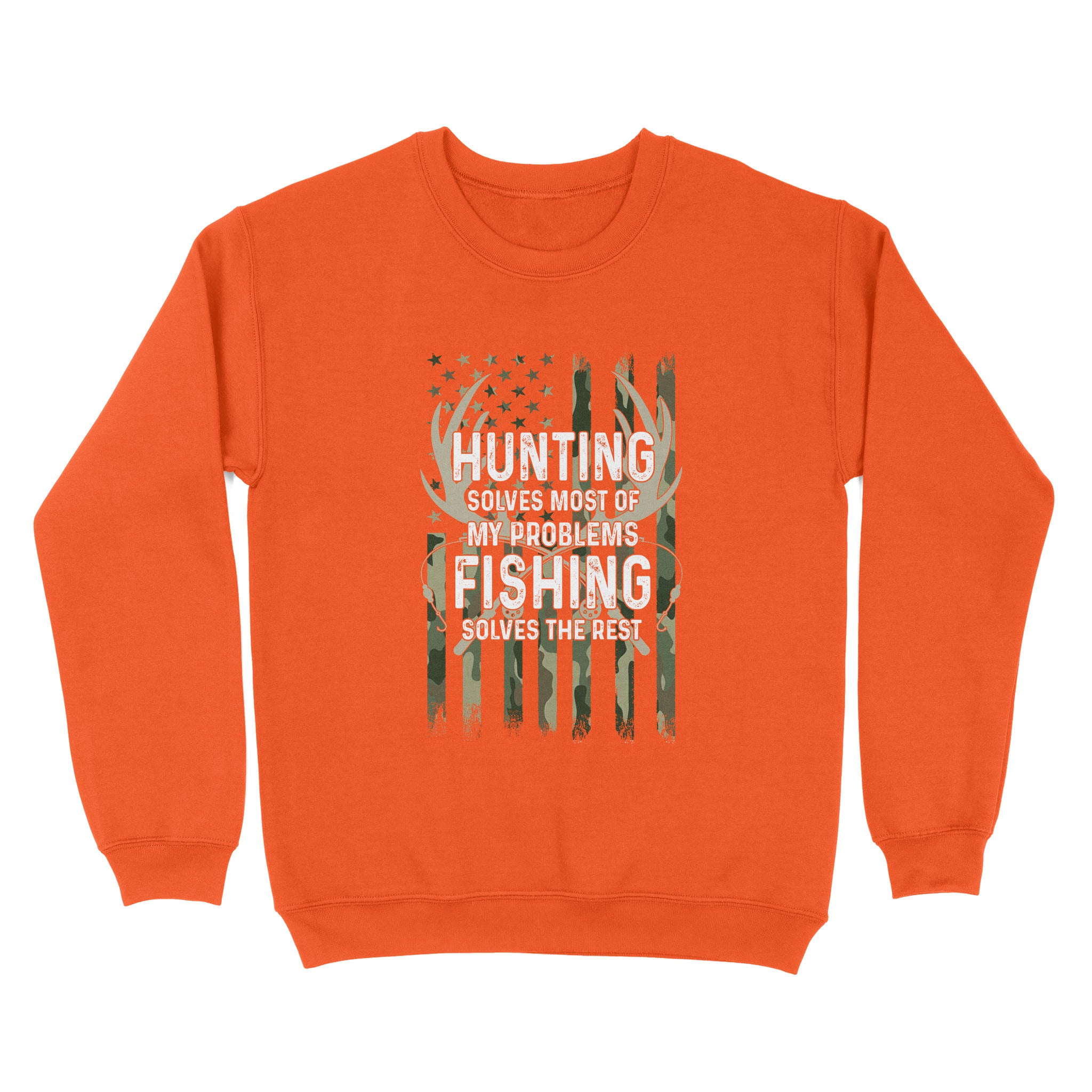 Hunting solves most of my problems, fishing solves the rest camo American flag D01 NQS3034 Sweatshirt