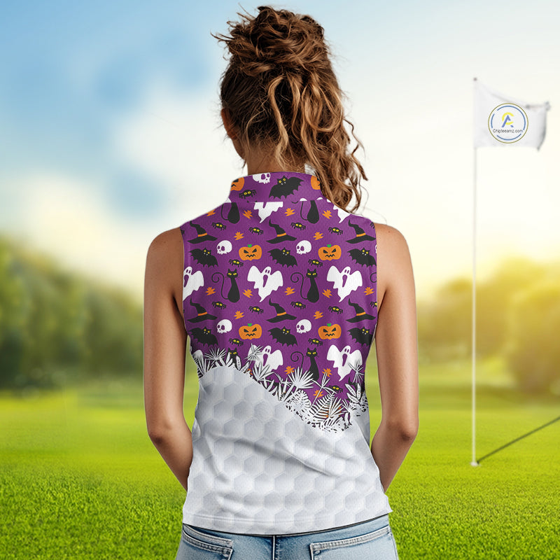 Personalized funny purple Halloween pattern Women sleeveless golf polo shirts best ladies golf wears NQS10315