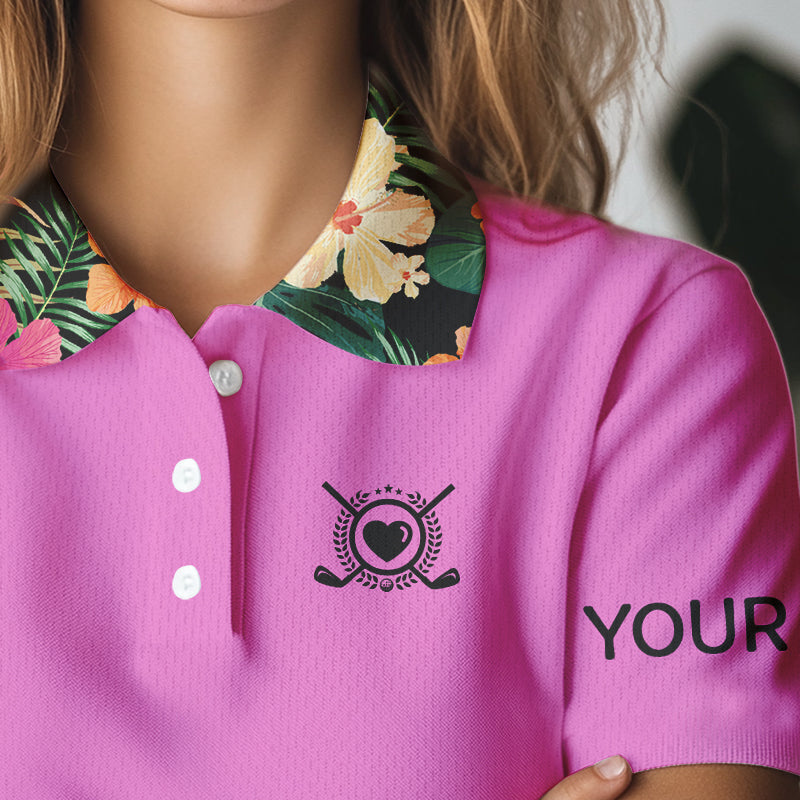 Pink tropical leaf Funny Women golf polo shirts custom name I am not swearing I'm using my golf words NQS9753