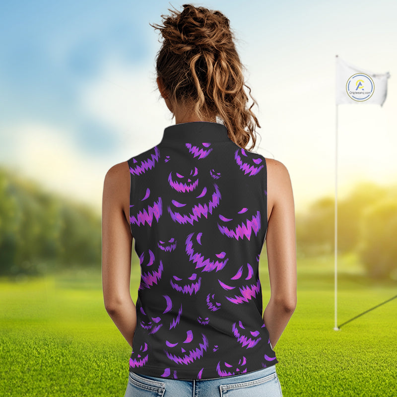 Purple and Black Halloween Pattern Funny Skull Golf sleeveless polo shirt Custom Halloween golf top NQS10663