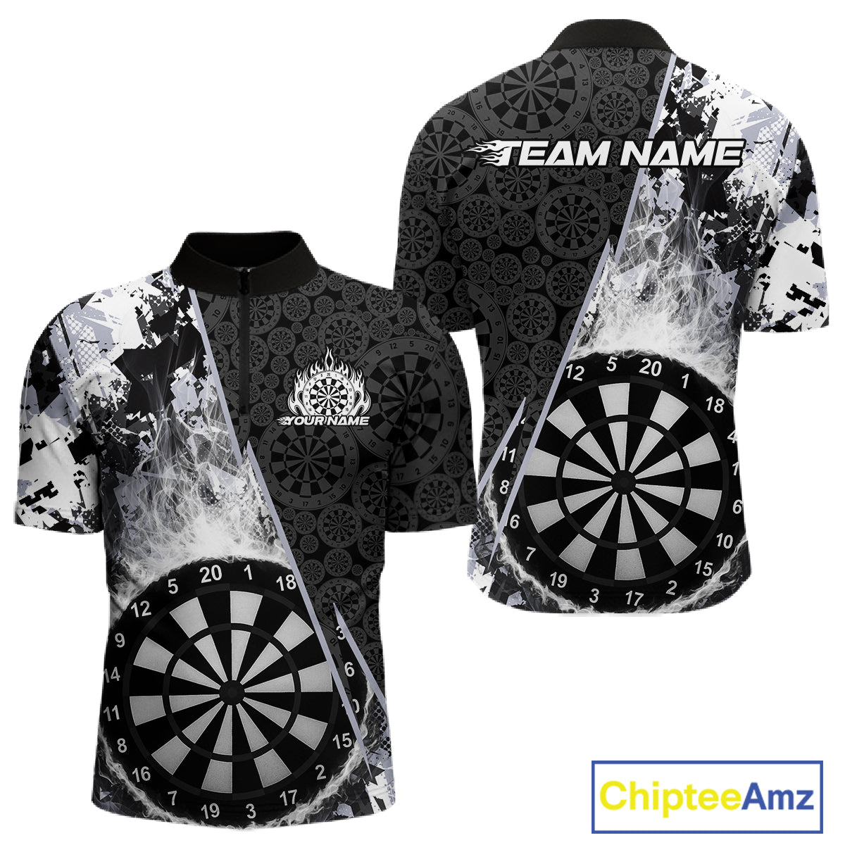 Custom Black And White Dartboard Camo Smoke Dart Team Men Quarter-Zip Shirts, Dart Jerseys IPHW9973