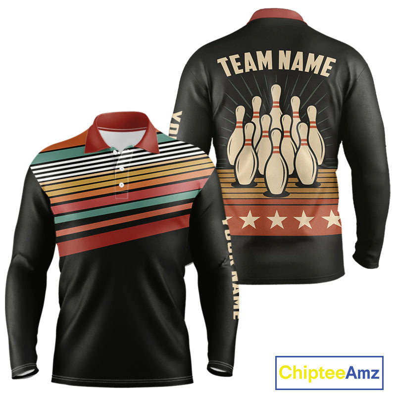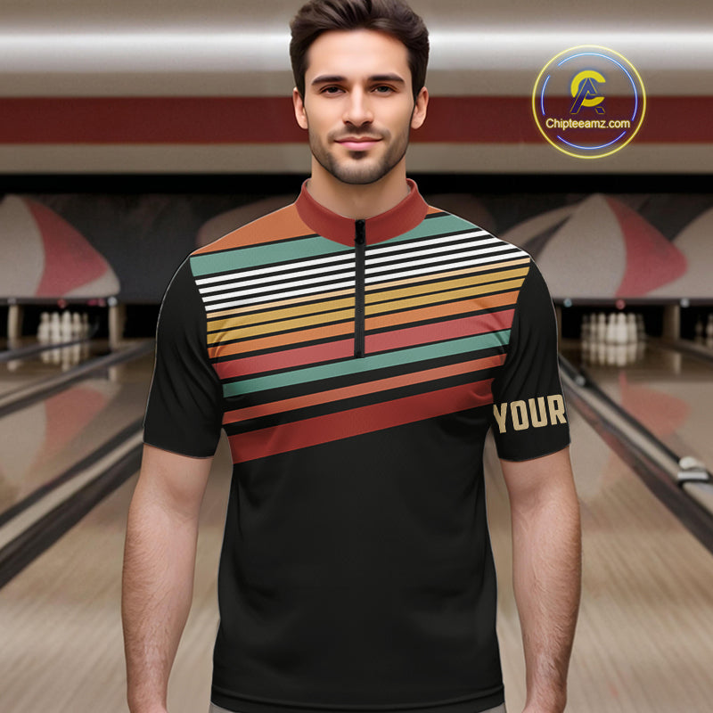 Retro Bowling Polo, Quarter Zip Shirt for Men Custom Vintage Team Bowling Jersey, Gift For Bowlers NQS10567