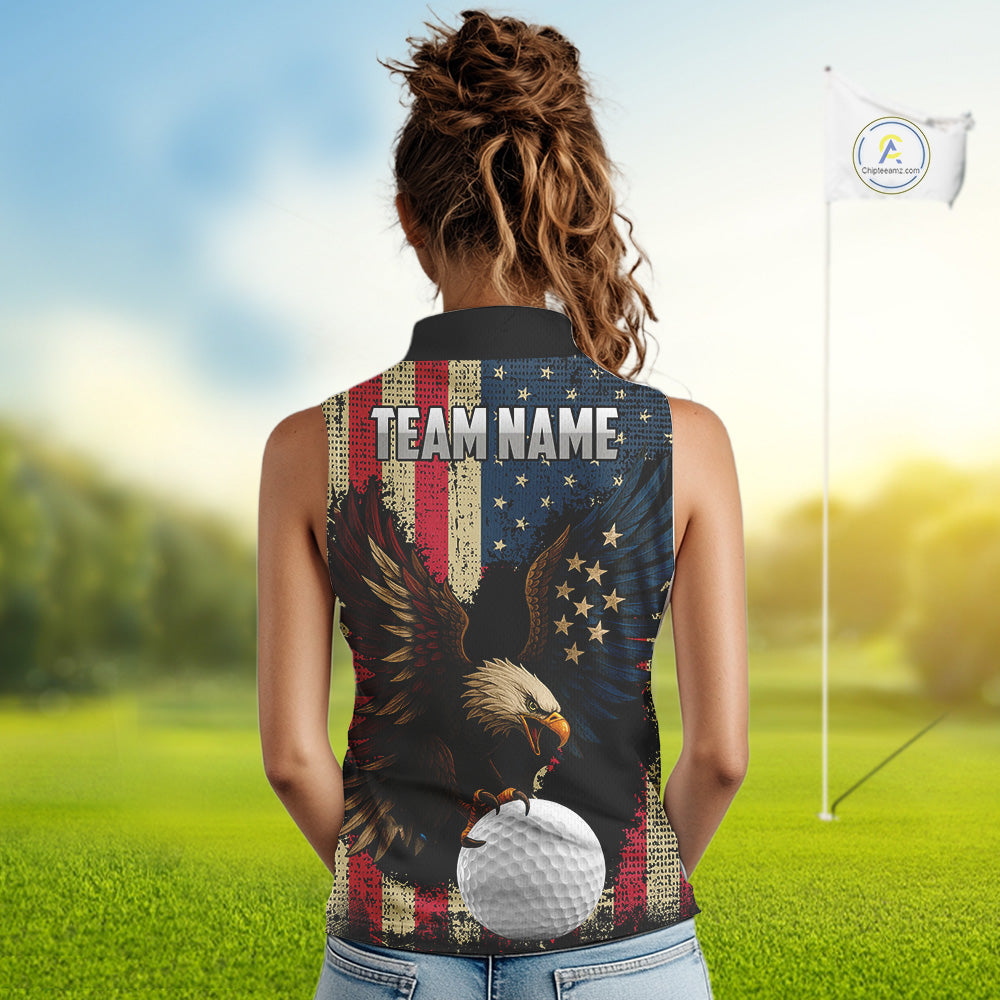 Vintage American Flag Eagle Sleeveless Golf Polo Shirt Custom Patriotic Retro Team ladies golf attire NQS10476