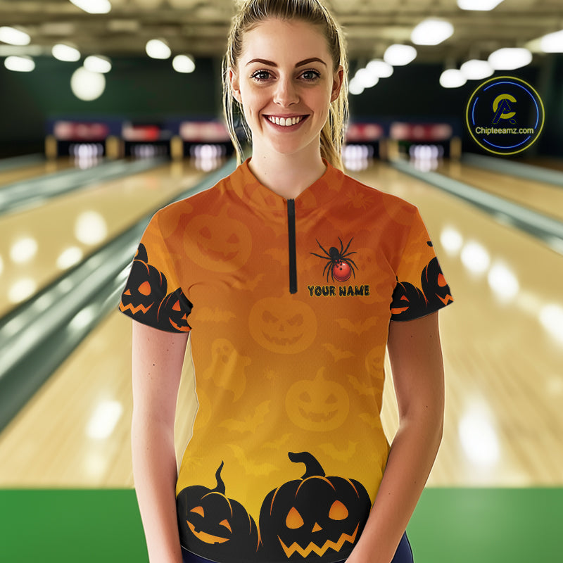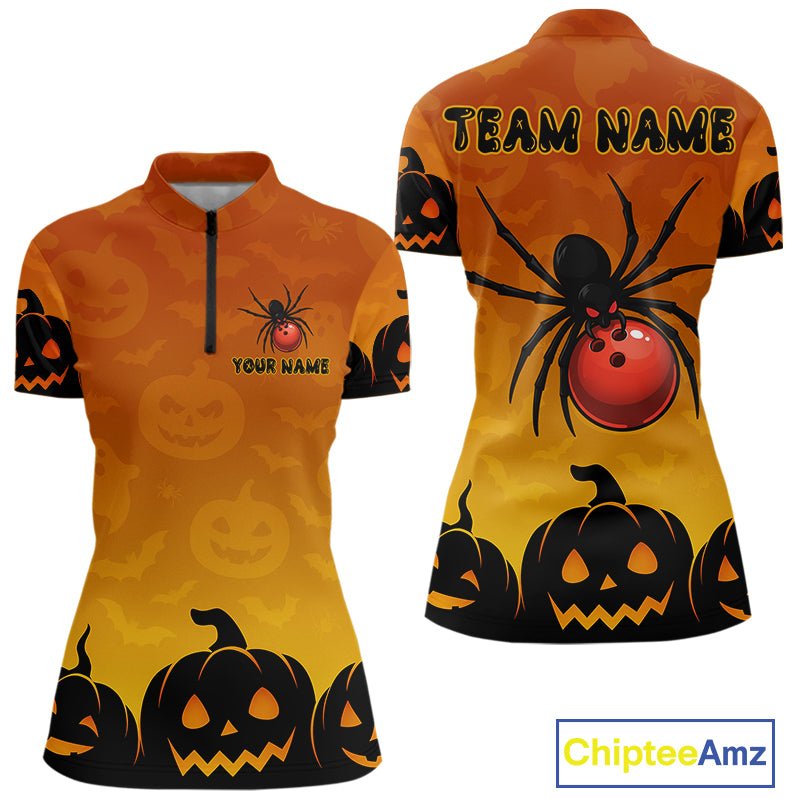 Personalized Orange Funny Spider Bowling Halloween Shirt For Women Custom Bowling Team Jersey TDM4925